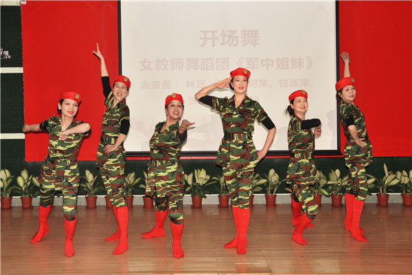 表彰会在女教师舞蹈团一曲飒爽英姿的《军中姐妹》中拉开帷幕,随后,工会常务副主席周峰致辞,校党委副书记刘永章宣读表彰决定。