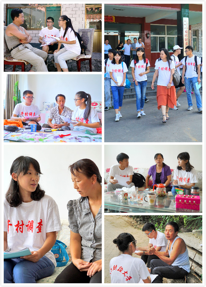 当然,此次调研活动更是对我们自身的成长与提升有很大的帮助,我们行走在田野中,山村中,向每位村民,仔细解释问卷中的每一个问题。尽自己最大的努力,去接近村民,使他们接受我们,愿意配合我们,拉近他们与我们的距离。这不得不让我们掌握一些沟通技巧,与其他人交往的技巧,给别人留下最好的印象。同时也锻炼我们的耐力与耐心,尽管已经说的口干舌燥,嗓子冒烟,但依然不能放下自己的工作与任务。相信这对我们以后在社会上待人接事,社会实践有很大帮助。总之,行走田野之间,获得不一样的成长,这是千村调查给我的最大的收获。