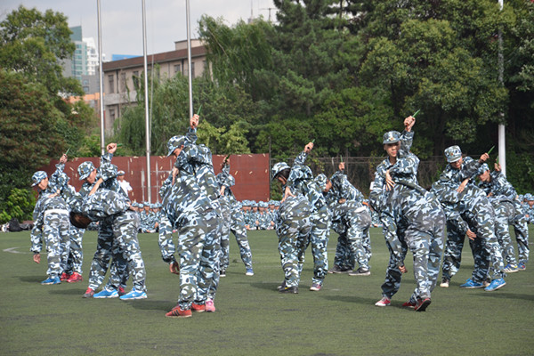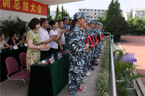 副校长孙铮作总结讲话,他首先向全体教官的辛勤付出表示衷心的感谢,向圆满完成军训任务的同学们表示热烈的祝贺。他指出,军训这几天,对我们同学的体能和意志都是一种考验,虽然梅雨和酷暑交织,但是同学们依然能够严格要求自己,服从命令,听从指挥,坚持刻苦训练,发扬了不怕苦、不怕累的精神,按计划完成了队列训练,条例学习,擒敌拳,反恐防暴技能培训,治安、消防安全教育,急救知识培训等内容,圆满地完成了各项训练任务。