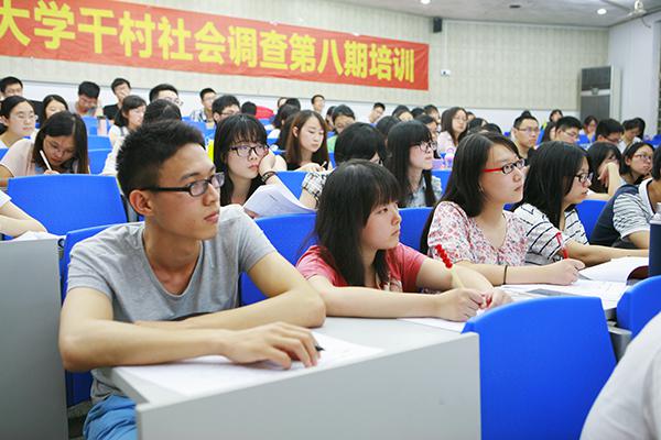7月3日晚,千村调查第八期培训大会在国定路校区阶梯教室召开,各部门联动,对全体参与调研同学进行培训工作。培训共有8场,每场培训历时2小时,培训内容包括:操作手册培训、影音拍摄技巧培训、调查问卷培训、社会调查方法培训、答疑五部分的内容,分别由学生处、宣传部、金融学院专家组、人文学院社会调查培训组的共计16名教师进行培训。