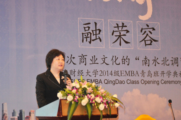 樊丽明校长在随后的致辞中对青岛市委市政府表示了感谢,她向新入学的EMBA同学以及在场的来宾介绍了上海财经大学近百年的辉煌而又曲折的发展历史,阐述了现代大学与社会之间的关系,表达了上海财经大学响应地方政府号召、对接服务青岛财富管理中心建设的意愿。