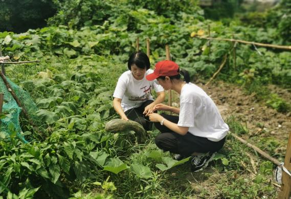 在劳动过程中,姚玲珍副校长和调研同学踏进地里采摘成熟瓜果,共同感受收获的喜悦。同学们通过劳动实践,进一步加深了对乡村的认知。