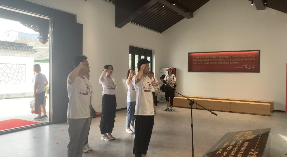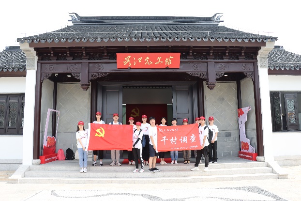 7月13日上午,千村调查组成员一行来到吴江区铜罗古镇,在镇领导的陪同下,共同参观了吴江党史馆,回顾中国共产党在吴江英勇奋斗的发展历程,重温红色记忆,感受革命精神,汲取奋进力量,践行初心使命。在参观开始前,调研小组中的党员师生面向党旗,重温了入党誓词。他们坚定地举起右拳,铮铮誓言响彻大厅,表达了他们践行初心使命的坚定决心。