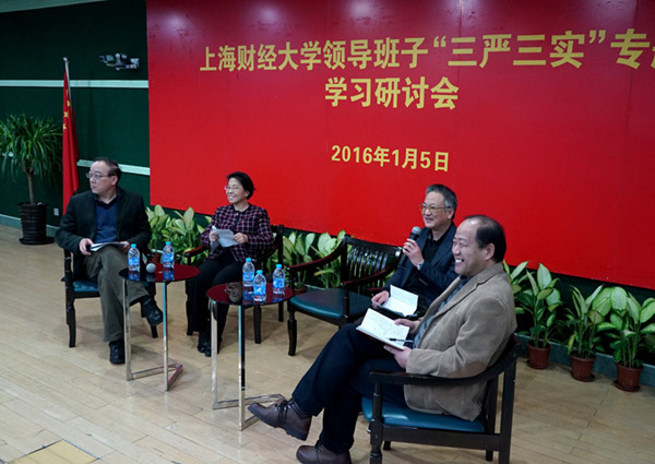 校党委书记丛树海做小组总结。党中央提出的“三严三实”是对我们每位领导干部提出的要求,学校发展也体现了“严”和“实”的作风和传统,更是“上财精神”的真正体现:以严格的教学和教育管理,扎扎实实做好人才培养工作;以严格的科研管理和学术研究,扎扎实实获得科研结果;以严格的精细化管理,追求学校管理的高效率,勤俭办学,办好学校。