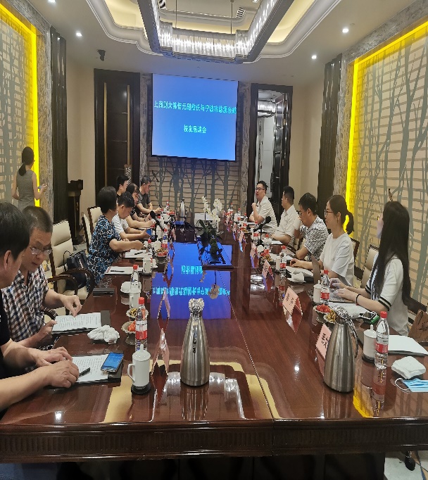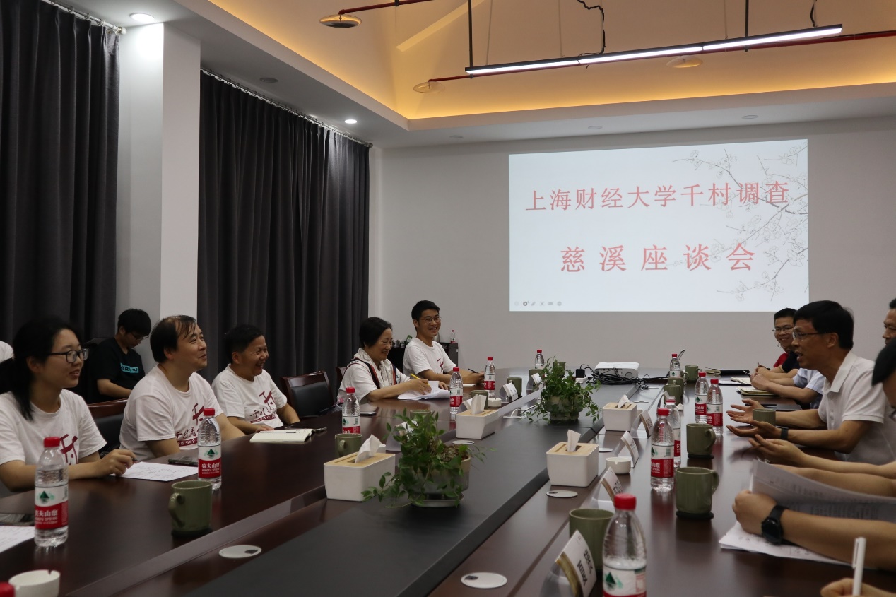 同日11:00,在慈溪上林湖青瓷文化传承园秘色瓷号实践基地,千村调查小组与慈溪市委统战部、农业农村局、市侨联、匡堰镇有关部门进行座谈。会议中,陈信元副校长向慈溪市委领导们介绍了上财学校整体发展情况和相关学科优势,以及千村调查的具体情况与成就,并向同学们表达了将青春挥洒在中国的每一寸土地上的希冀,希望上财学子借助“走千村,访万户”,读懂中国,为新时代乡村产业振兴和乡村发展,迈向共同富裕做出上财贡献。慈溪市领导们也详细介绍了慈溪市目前的各个产业现况,并对未来的发展目标进行了阐述,希望能和上海财经大学进行更深层次的合作,汇聚力量,以未来农业为导向,将慈溪打造成为全国未来农业的示范基地、长三角地区的一颗璀璨的明珠,助力树立共同富裕省域范例。