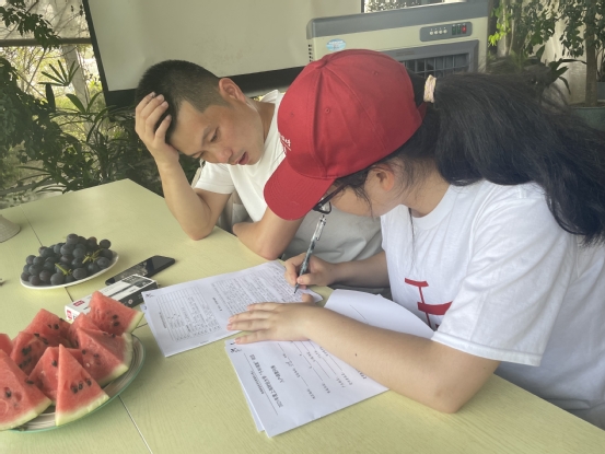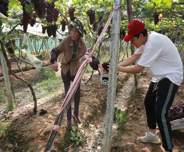 骄阳如火,也不能阻挡大家高昂的士气和调研的热情。7月12日13:30,千村调查小组前往慈溪市沈五村进行入村入户调查。在村委会初步介绍了沈五村近年来的发展情况后,陈信元副校长带领师生,迅速开展入户问卷调查,并且从旁聆听,进行方法、细节上的指正,入户问卷调查小组迅速进入状态,并且顺利完成了任务。同学们通过此次的调研发现,沈五村通过土地流转的方式,家庭农场式现代农业迅速发展,培养了一批葡萄、草莓、火龙果等特色种植产业,并且了建立起大大小小约100家企业,努力实现乡村产业振兴。