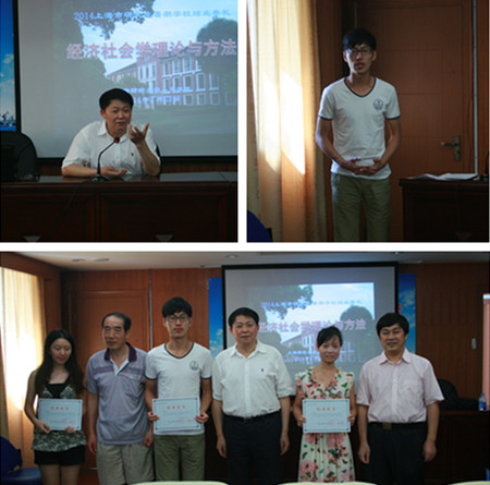 7月14日上午9点,2014上海“经济社会学理论与方法”研究生暑期学校开学典礼在上海财经大学人文学院同新楼113室隆重举行。人文学院院长张雄教授、研究生院副院长邹平教授、人文学院副院长郝云副教授、人文学院经济社会学系主任张彦教授出席开学典礼。开学典礼由人文学院经济社会学系副主任刘长喜老师主持。 人文学院院长张雄教授简要回顾了国内社会学的发展历程,介绍了人文学院经济社会学专业的背景、办学特色以及良好的发展态势,感谢上海市学位委员会和学校研究生院对暑期学校的大力支持。结合中国共产党十八届三中全会以后党中央强调全面深化改革的大背景,他指出通过举办研究生暑期学校的形式来探讨经济社会学重大现实问题,对推进经济社会学学科的发展具有十分重要的学术意义。 研究生院副院长邹平教授简明地介绍了上海财经大学的办学特色和办学优势,以及人文学院在学科建设方面取得的重要成效,特别是包括经济社会学在内的交叉学科建设,强调了举办研究生暑期学校对学科发展、人才培养、学术交流的重要意义,肯定了学院在研究生暑期学校招生宣传和教学安排等方面的出色工作,要求所有学员认真聆听暑期学校的课程,积极参与暑期学校各个环节的活动,圆满地完成暑期学校的学习任务。 师资团队方面,除上海财经大学人文学院经济社会学系骨干教师之外,还将邀请国内外知名专家、学者前来讲学授课。课程设置方面,本次暑期学校将围绕“经济社会学理论与方法”这一主题,设置了学术讲座、专题报告、模型+案例、经典著作导读、学术沙龙、论文写作指导等多种教学形式。教学安排上,每天上午、下午和晚上都有相应的课程安排。所有学员都坚持参加学习,认真听讲,积极投入讨论交流。 经过为期9天紧张的课程教学之后,2014上海“经济社会学理论与方法”研究生暑期学校取得圆满结束,于2014年7月22日下午2点在人文学院同新楼113室举行了结业典礼。人文学院院长张雄教授高度评价了本次暑期学校的价值和意义,号召全体学生继续关注经济社会学,积极投入到经济社会学研究之中。张雄院长、郝云副院长和张彦教授为三位学生代表颁发了上海市研究生暑期学校结业证书。