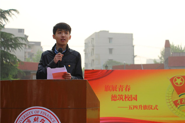 紧接着,2011级学生陆卿诚作为学校五四青年标兵代表上台发言,回顾了自己四年大学生活的收获,也分享了自己对于习大大寄语青年八字真经“勤学”、“修德”、“明辨”、“笃实”的理解。