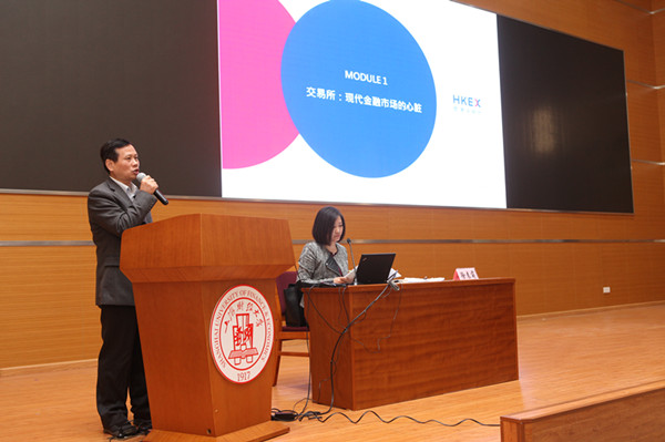 课程的开讲人为香港交易所北京代表处首席代表徐春萌女士,其围绕“交易所——现代金融市场的心脏”一题为在座师生讲解了交易所的功能和行业历史演变、交易所最新发展趋势,用 “香港交易所改制上市与收购伦敦金属交易所” 的生动案例分析了改制上市的益处、核心问题以及收购的内生动力,最后向大家展示了香港交易所集团业务及《战略规划2016-2018》。