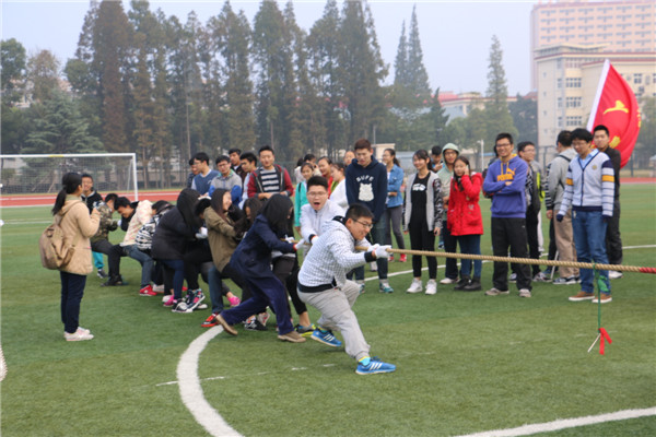 短暂的休息后,结合了力与美的拔河比赛在武东操场上拉开了序幕。比赛开始前,操场上人声鼎沸,气氛热烈。裁判宣布入场后,各学院站到了指定的赛道上,参赛的同学和观战的同学挤满了操场。冷风呼啸而过,却吹不走弥漫开来的紧张与兴奋。随着裁判一声令下,比赛开始了,操场上顿时呐喊喧天,加油声、口号声此起彼伏。进入决赛阶段后,剩下的两只队伍都对最后的胜利充满渴望。比赛战况胶着,进行了三个回合才分出了胜负。最后国际文化交流学院获得季军,公共经济与管理学院获得亚军,国际教育学院则荣膺冠军,捧得大力神杯。