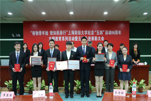 5月12日下午,校团委在行政楼一楼报告厅举行“格物青年始 致知躬亲行”上海财经大学纪念“五四”运动96周年主题教育系列活动暨五四先进表彰大会。校党委副书记刘永章、校长助理、组织部部长朱鸣雄、宣传部部长章益国、学生就业指导中心主任谭予絮、研究生院副院长朱君萍、教务处副处长曹晓霞、学生工作部(处)副部长张琴、校团委书记褚华,来自各学院的分管学生工作书记、分团委书记及各奖项获奖代表出席了此次表彰大会。