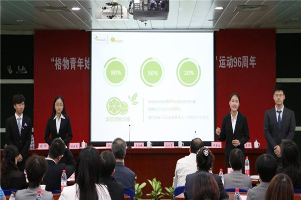 在2015年创行公益创业赛事华东赛区冠军项目“橘艺双馨”和“洁城卫你”团队的精彩创意展示后,本次大会正式开始。校团委书记助理团团长张雅佩对我校“格物青年始 致知躬亲行”主题教育系列活动进行了回顾和总结,生动再现我校同学投身各类团学活动的青春风采。