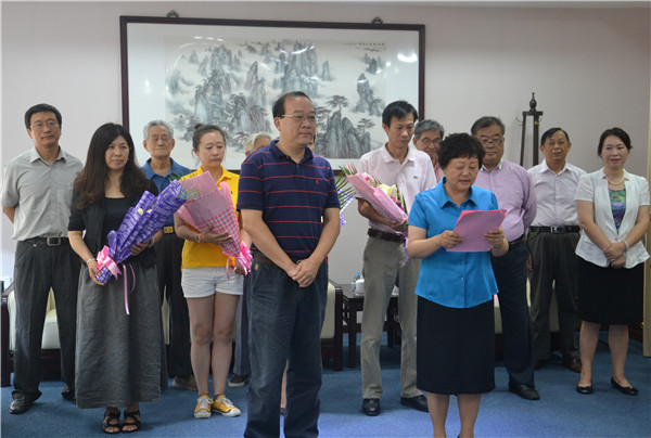 樊丽明校长宣读了我校获得由中共中央、国务院、中央军委颁发的“中国人民抗日战争胜利70周年纪念章”的老同志名单,并介绍了他们的情况。