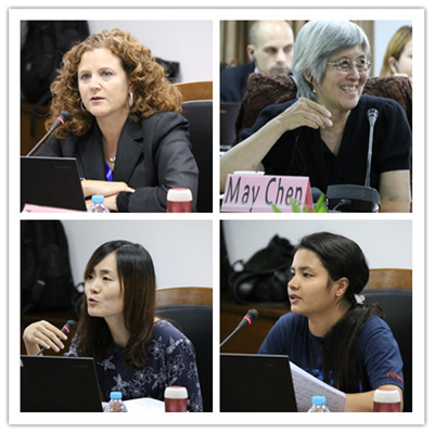 会议的第三单元以“全球视野下自贸区劳动标准实施中的问题”为主题,由美国纽约市立大学穆尔菲劳动关系学院客座教授May Chen主持,她感谢主办方进行的努力,并对三位发言人进行了介绍。首先纽约总检察长办公室劳工部主任Terri Gerstein以“纽约州劳动法实施情况”为主题做了发言,他首先介绍了美国劳动法实施系统,联邦与州、地方实施情况,纽约政府实施概览和纽约州的预防措施,并通过案例的讲解劳动执法的情况。纽约市立大学穆尔菲劳动关系学院客座教授、美国专业技术工程师国际联合会主席Gregory J. Junemann以“贸易谈判和贸易政策”为主题发言,他首先介绍了劳工顾问委员会的组成,认为美国工会的利益诉求是组织与集体谈判的自由、工资和工作待遇的妇女平等、环境保护、农业法规、出台法规,确保雇主对上述事项负责以及保护雇员对其雇主的申诉权利。康奈尔大学ILR学院劳工研究院教授Patricia Campos-Medina以“自由贸易区的劳动标准:中美洲-萨尔瓦多,实地调研”为主题做了报告,她对实地调研的背景进行了介绍,阐述了萨尔瓦多的自由贸易区以及工人特性,总结了这次实地调研的经验。在三位发言人的报告结束后,安徽大学李坤刚教授和上海海事大学法学院副院长曹艳春教授作为评议人进行了评议。在自由讨论环节福建师范大学法学院郑丽珍、上海海事大学法学院副院长曹艳春教授、安徽大学李坤刚教授和山东大学刘文教授的提问得到了中外学者的回应。