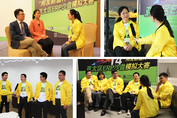在两天的决赛过程中,每支队伍都全身心地投入,沉着应战、竭尽全力,将在课堂掌握的知识及在工作中积累的经验,合理有效地融入沙盘模拟比赛之中。从选单到采购,从生产到营销,每一步他们都走得艰难而坚定。每位参赛者的表情,都透露了他们内心的执着,显现出对队友的信任,洋溢着对沙盘模拟赛的强烈热爱。比赛间隙,上财商学院还精心为参赛选手及指导教师安排了形式多样的采访环节,及时了解和掌握选手们的比赛过程、心理状态、表现情况等信息。