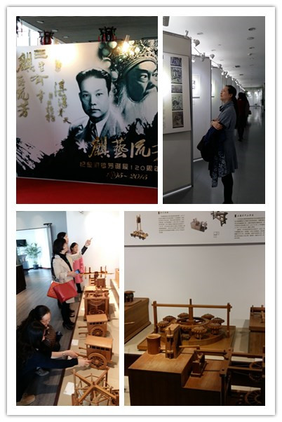 大家首先来到同济大学图书馆,在一楼参观了以中国传统文化艺术为主题展览,包括“麒艺流芳——纪念周信芳诞辰120周年图片展(1895-2015)”、“景观与人文——意大利18世纪铜版画精品展”。然后,在同济大学图书馆馆员的带领下,参观了位于图书馆第十层的“闻学堂”。闻学堂呈环形布置,集中国传统文化文献阅览、展示、研讨功能于一体,开展了茶艺品评、书法展示、经典诵读、民乐演奏等多种传统文化主题活动,以立体阅读的方式进行中国传统文化传承创新教育。大家在“闻学堂”观看了“中国古代机械复原模型展”,以及正在布展的“细说三国主题展览”。大家都觉得非常有收获。