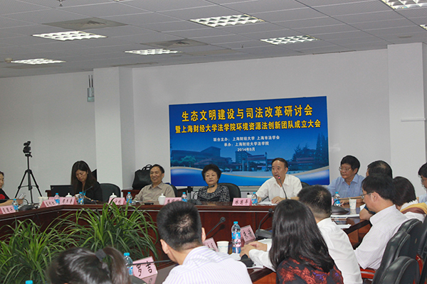 9月28日,由上海财经大学与上海市法学会联合主办、上海财经大学法学院承办的“生态文明建设与司法改革研讨会暨上海财经大学法学院环境资源法创新团队成立大会”在上海财经大学隆重召开。来自武汉大学、中国政法大学、中南政法大学、苏州大学、温州大学、宁波大学、河南大学、华侨大学、同济大学、上海大学、上海财经大学、最高人民法院等高校和机构的环境法领域专家学者四十余人汇聚一堂,就“生态文明建设与司法改革”的会议主题展开研讨、共贺上海财经大学法学院环境资源法创新团队的成立。