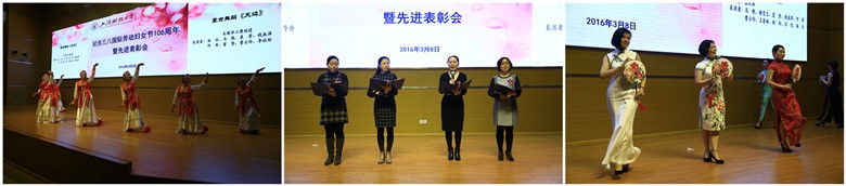 表彰会在上财旗袍文化协会一曲婀娜多姿的舞蹈《女人花》中拉开帷幕,随后,校党委副书记刘永章宣读表彰决定。