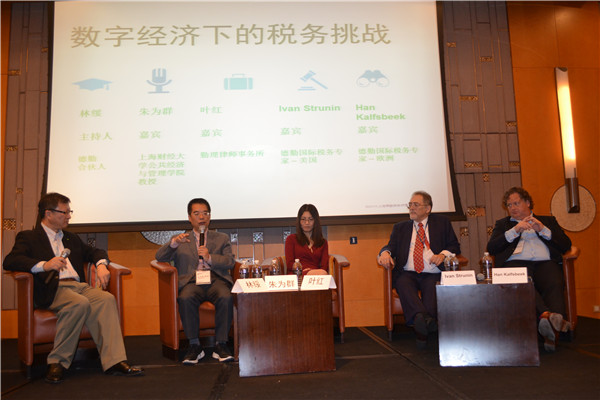 在10月26日上午大赛主办方举行的“数字经济下的税务挑战”论坛中,我校公共经济与管理学院朱为群教授应邀与德勤国际税务中心亚太区执行总裁、德勤外籍合伙人以及上海德勤税务师事务所合伙人等四人一起作为论坛嘉宾,与所有参赛学生和带队老师共同探讨数字经济下的税务问题。朱为群老师的建设性发言引发了与会者的强烈兴趣和热烈讨论。