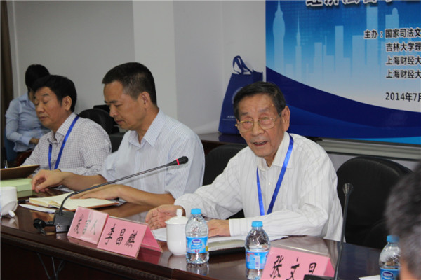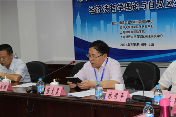 研讨会安排了三场主旨报告,与会专家学者围绕“经济法哲学理论与自贸区实践”的主题,从“经济法哲学基本范畴”、“自由贸易法哲学理论”、“自由贸易区的司法体制改革”三个议题分阶段展开发言、评议和观点交流。会场气氛热烈活跃,在各种观点的交融和碰撞中展示和分享了当代法学家的研究成果与思想。