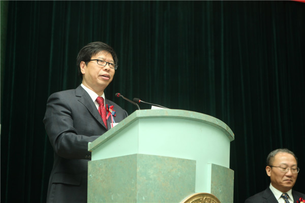 最后,上海财经大学校友会会长、上海财经大学校长樊丽明发表重要讲话。樊校长向莅临大会的领导、来宾和海内外校友代表,表达热烈的欢迎,樊校长回顾我校近百年办学历程,赞誉12余万校友爱校、荣校、兴校的光荣传统,感谢校友们为国家建设和社会发展做出的贡献、感谢校友为母校的建设做出的贡献。樊校长还对校友工作提出明确指示,要求继续秉承“服务校友发展、服务母校发展”的宗旨,围绕制度建设、组织建设、平台建设、文化建设等四方面扎实推进校友工作。