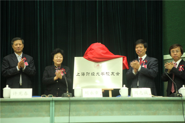 樊丽明校长与廖鸿副局长共同为“上海财经大学校友会”铭牌揭牌。