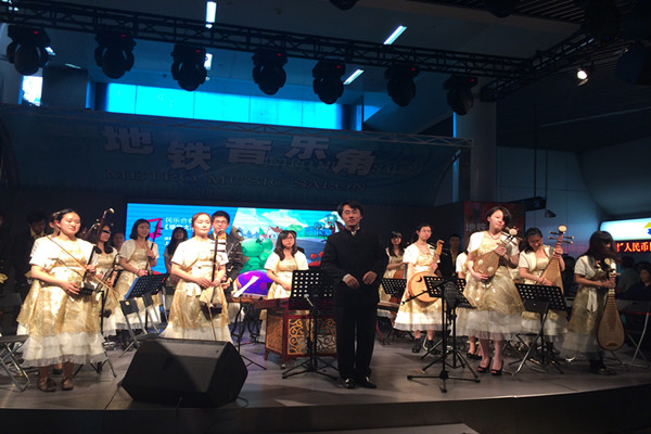 5月11日,我校学生民乐团应邀在人民广场1、2、8号线换乘站举办了“地铁音乐周”上海财经大学民乐团专场表演。在短短的一个小时里,乐团先后演奏了多首大家耳熟能详的经典器乐曲目、国家非物质文化遗产的江南丝竹作品、我校民乐团多次获奖的优秀作品以及同学自己创作改编的现代作品。