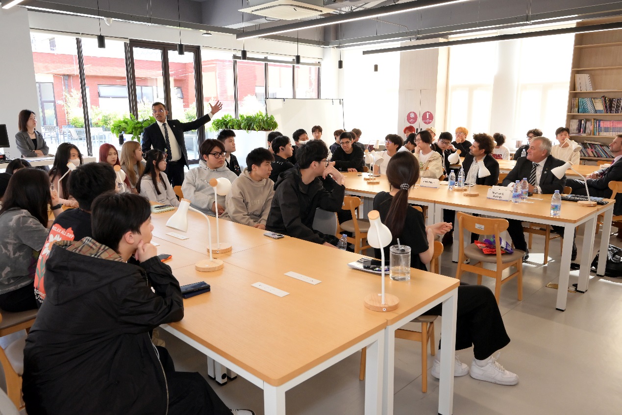 会谈结束后,Zelinsky校长一行来到国际教育学院与合作项目的学生代表见面,并由其商学院副院长Rodrigs博士为学生们介绍了国际留学生在纽卡斯尔大学的收获与成长,交流现场互动频频,气氛活跃。