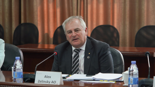 5月16日下午,澳大利亚纽卡斯尔大学校长Alex Zelinsky AO教授一行访问上海财经大学,校长刘元春会见来宾,副校长李增泉、国际教育学院院长沈晖、国际交流与合作处副处长丁冬等陪同会见。