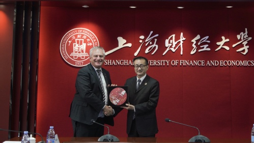 Zelinsky校长对刘元春校长表示感谢,并对上财的治学理念表示高度赞赏。他分享了纽卡斯尔大学自建校以来在教学、科研等方面的建设成果,介绍了其各个校区的学科特色与发展战略,并表示希望与上海财经大学建立更宽领域、可持续发展的合作伙伴关系。