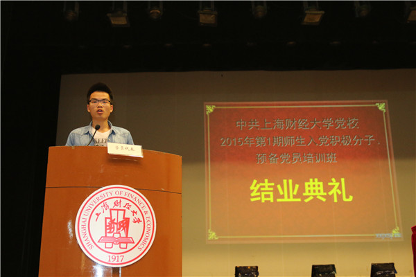 4月26日下午3点30分,中共上海财经大学党校2015年第1期师生入党积极分子、预备党员培训班结业典礼在国定路大礼堂如期举行。各院所分党校基层负责人出席了本次活动。