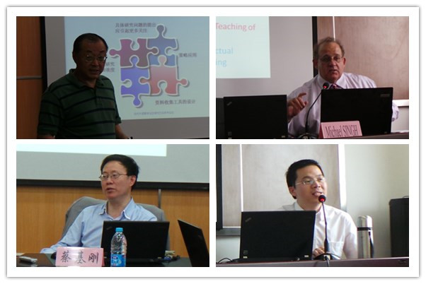 澳大利亚西悉尼大学的Michael Singh 教授讲座“Innovative Ideas in Research Methods and Postgraduate Research Education”对当代外语教学研究和研究生指导提出了创新思想,认为 “知识平等教学法”在研究生指导方法中十分重要, 是外语教学和研究的一个重要焦点。复旦大学外文学院蔡基刚教授做了题为“学术英语及其思辨性能力的培养”的讲座,认为我国的外语教学正面临着突破,商务英语、专业翻译和学术英语则是这些突破的主要前沿,课程的专业化趋势更需要我们加强技能和素质的培养。上海外国语大学郑新民教授做了“外语教育研究的具体路径和选题方法” 讲座。郑教授首先从教育研究需要有明确的哲学思考入手,阐明什么是外语教育研究,勾勒外语教育的基本线路图,接着讲座就外语教育研究实例来阐述了外语教育研究的研究步骤和过程。