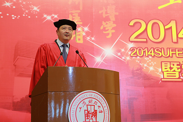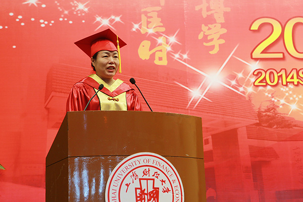 毕业典礼仪式中,樊校长对广大毕业生圆满完成学业表示祝贺。在讲话中,她结合习近平总书记五四重要讲话精神,以“责任”为主题词,与毕业生们分享了2011届产业经济学博士、2013年全国百篇优秀博士学位论文作者郑若谷,2012届经济学院毕业生车林,2012届应用数学系本科毕业生、2013年上海市五四奖章获得者姜天宇三个校友的成长故事,希望2014届毕业生们秉承“厚德博学、经济匡时”的校训精神,用责任撑起生命的各个维度,始终怀有爱国情、向善心、进取志,时刻正视自己肩负的责任,勇于担当,永不退缩,抵御浮躁、坚守梦想,始终把握正确的人生方向。(樊校长讲话全文另发)