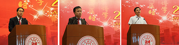 我校校友上海浦东融资担保有限公司董事长、总经理董勤发,陆逊梯卡集团全球IT服务共享中心信息技术总监陈登科,安徽省宣城市市委常委、副市长、市政府党组成员汪谦慎也在毕业典礼上发表了他们的感想。他们以一名学长的身份与毕业生们一起回忆自己的成长经历,分享了自己职业生涯的发展经历,激励毕业生们坚持信念、不断攀登,学会担当和感恩,做精神的富足者。同时对毕业生们提出希望,希望他们能够始终怀有学习的意识、沟通的意愿与合作的精神,懂得感恩、铭记责任并力求超越。