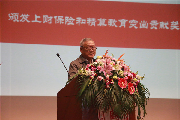 颁奖结束后,上海财经大学保险精算专业的创立人许谨良教授作为获奖个人代表发言,他深情回顾了保险专业复业的历程以及复业以来的发展,30年来,许许多多优秀的教师为保险业人才的培养付出了辛勤的汗水,保险系培养了一批批优秀的毕业生活跃在学界与业界。许谨良教授还向为上财保险系发展提供无私帮助的兄弟院校表示了感谢,祝愿保险系能够越办越好,更上一层楼。
