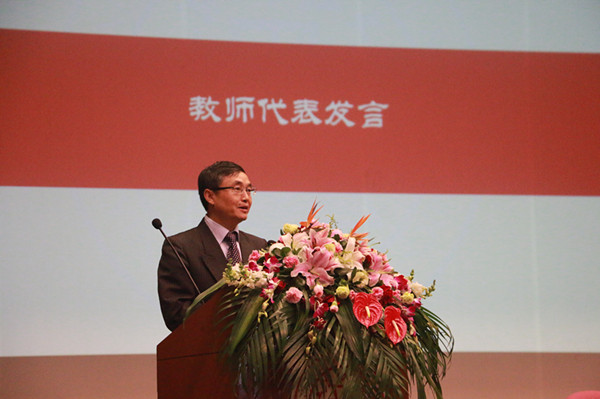 最后,上海财经大学金融学院谢志刚教授作为教师代表发言。谢志刚教授在金融学院保险系任教近20年,培养了一批批优秀的精算人才,他开玩笑地将汇聚一堂的各位校友比作学校的“股东”,教师则需要对“股东”进行述职报告。谢志刚教授总结了上财精算教育的方针政策——即培养“三会一调”的毕业生。“三会”是指“会算”“会说”“会写”,“一调”则是指“有腔调”。谢志刚教授代表金融学院保险系的各位老师承诺将会再接再厉,在保险系69年积淀的基础上,培养出“会算”“会说”“会写”又“有腔调”的人才。