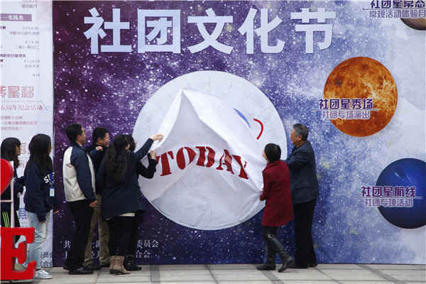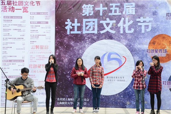 4月14日中午,阳光斑斓和风阵阵,上海财经大学第十五届社团文化节在国定校区绿叶步行街广场举行,校党委副书记刘永章、党委宣传部部长章益国、合作发展处处长陈红梅、学生工作部(处)长冯润民、就业指导中心主任谭予絮、保卫处处长张满仓、团委书记褚华出席,各社团代表及部分师生参加了此次开幕式。