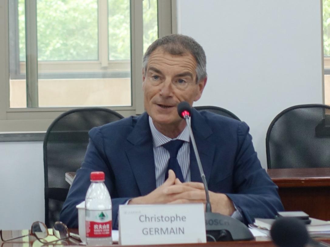 Christophe副校长对刘元春校长的接待表示感谢,对上财在学科建设与人才培养方面所取得的成绩以及两校八年来的合作成果给予了高度评价。随后,他介绍了SKEMA商学院四大交叉学科学院的基本情况,表示两校在探索复合型人才培养领域拥有相似的愿景和规划,存在许多潜在合作机遇。同时,他认为两校代表会面并讨论深化合作伙伴关系的实践也是顺应中法两国元首会晤精神的最佳印证。