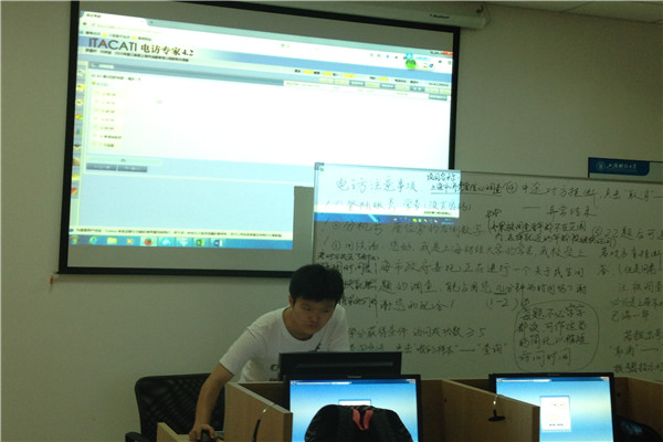 罗景升同学为高中生们做了电话调研的示范,涉及调研问卷、电访系统的使用事项、电访过程中的礼貌用语等。同学们带着好奇和期待,开始了第一次电话调研的体验。一个半小时的体验中,同学们不光亲身试做电访员,也初步感知了社会调研的部分环节。