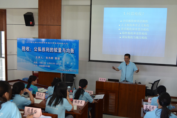 “今天是税收征管的最后一次课了,也是敬爱的朱为群老师给我们13级税务硕士上的最后一次课。大家心里都很难过与不舍。我们早已感动于老师为我们税务硕士项目所投入的每一滴心血,我们也赞叹于老师自由而开放的上课方式,不拘一格。人生遇此良师益友,足矣”。这是学生在微博上表达的对老师朱为群的喜爱与感激之情。也许对朱为群而言,这百余字的一段话胜过任何的奖励。