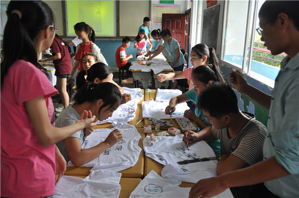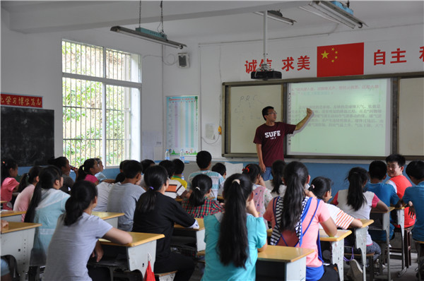 十天以来,志愿者们为当地初中的孩子们带去了学校课堂无法学到的知识,开展了丰富多彩的特色课程,课程设计大致分为三类,第一类为校内基础学科,但志愿者们的课程准备以激发学习兴趣为出发点,重在趣味性和课外延伸性,旨在让学生减少对校内学科抵触情绪。第二类为素质拓展,如经济学小讲堂、信息时代、法律基础、中国传统文化、求生常识、看世界等,旨在让学生开阔眼界更加了解世界。第三类为针对初中生心理发展的课程,如价值拍卖课、感恩教育、心理课等。除了开展特色课程,志愿者还组织了多种多样的课外活动如定向越野、T恤设计。