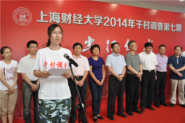 公共经济与管理学院2013级财政学专业蒋映涵同学作为学生代表发言,她代表全体参加调查的同学郑重承诺,将本着“共同用最真实的数据反映最真实的中国农村发展情况”的宗旨活跃在千村调查数据搜集的第一线,尽心尽力、尽职尽责、诚信调研,礼貌谦和,展现上财学子不怕吃苦,勇于探索,积极投身社会实践的优秀品质。