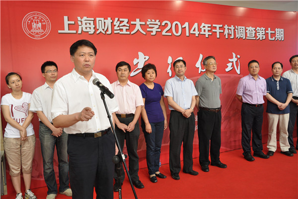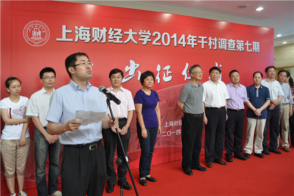 7月2日中午,上海财经大学千村调查第七期出征仪式在武东校区学生中心大厅举行,校党委副书记刘永章、副校长蒋传海出席,千村调查第七期首席专家、人文学院院长张雄,第七期专家组成员郝云、陆绯云、杨乐、魏南海等,发展规划处、科研处、教务处、校团委、宣传部、信息管理与工程学院等相关部门负责人,各学院(系、所)分管学生工作书记和学生代表共计100余人参加了出征仪式。仪式由学生工作部(处)长冯润民主持。