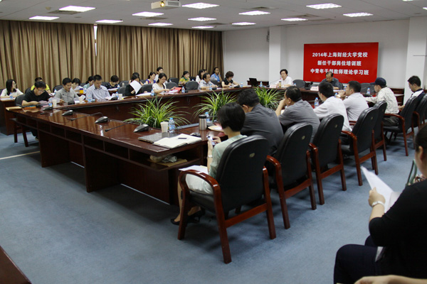 6月20日上午,上海财经大学2014年新任干部岗位培训班、中青年干部教师理论学习班开学典礼在我校行政楼三楼会议室举行。典礼在庄严的国歌声中拉开帷幕,2014年新任干部岗位培训班和中青年干部教师理论学习班学员共计70人参加。典礼由党校副校长章忠民主持。