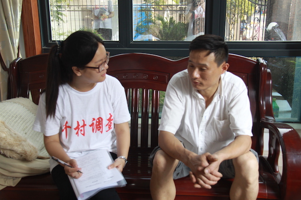 16:00,调查队的五个小组从村委会出发,开始下午的访谈。记者跟随沈思勉与余诗雯小组来到下午需要走访的第一户人家,两位队员说明来意后,这户的主人并不愿意接受采访,两位队员耐心解释调查的内容跟用处,并一再表示访谈并不会耽误太多时间,但最终户主还是不同意,考虑到时间她们最终决定寻找下一家。