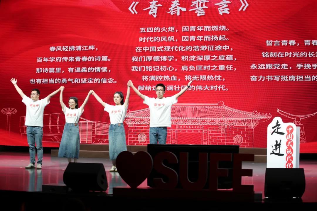 三位上财学子王佳怡、蓝紫文、葛力铭深情讲述了《党旗下的青春故事》,他们在参与支教扶贫、千村调研、敢坐冷板凳追逐科研梦的青春故事中,展现了上财学子“胸怀家国、经济匡时”的精神风貌,以实际行动为“教育强国、上财何为”的时代课题做出了属于上财学子的青春注解。