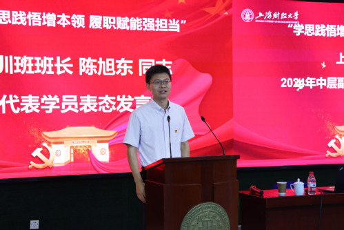 培训班班长、党委校长办公室副主任陈旭东代表学员作表态发言。陈旭东副主任表示,全体学员将充分珍惜本次培训机会,以积极主动的学习态度认真参加各个环节的学习,并加强学员之间的横向交流。同时,注重学习成果的转化,坚持学以致用、用以促学,努力把培训成果转化为推进学校各项工作的实践成效,为学校的高质量发展作出更大的贡献。