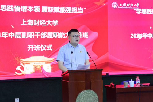 6月11日上午,上海财经大学“学思践悟增本领,履职赋能强担当”2024年中层副职干部履职能力提升班开班仪式在行政楼一楼报告厅举行。校党委书记、党校校长许涛和学校全体100余名中层副职干部参与活动。开班仪式由党校副校长、组织部副部长王峰主持。