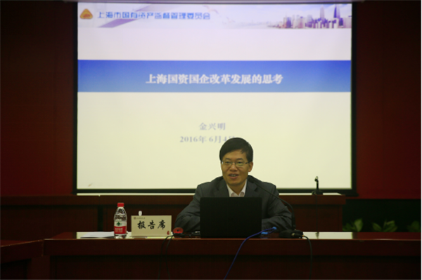 随后,上海市政府副秘书长、国资委主任、党委书记金兴明校董为大家做了题为“上海国资国企改革发展的思考”的精彩报告。首先,金兴明校董简要回顾了上海国资国企十二五工作及十三五规划。他指出,早在十二五期间,上海市的国资国企改革就已先行一步,布局结构进一步调整优化,国有企业改革取得了新进展,国资管理的体制机制不断完善,并在创新发展上迈上了一个新的台阶。他从深化开放性市场重组、优化企业的布局等六点出发阐述上海市在十三五期间对于国资国企改革的规划。接着,他指出国资国企改革发展的两大要素,即先进理念引领与改革创新驱动。上海市委市政府提出要在下半年掀起创新创业第二轮高潮,并通过不断优化经济结构,坚持创新、协调、绿色、开放、共享五大理念,迎接经济新常态及供给侧结构性改革下的一系列挑战。最后,金兴明校董分享了他关于进一步深化国资国企改革的一些思考。他针对当前国资国企存在的主要的三个问题和一个不适应,提出深化改革要从“三个着力”和“三个坚定”出发,即着力服务国家战略和市经济社会发展,坚定推进国资国企改革发展;着力优化布局调整结构,坚定贯彻创新驱动、转型升级方针;着力降成本、补短板、防风险,坚定实施提质增效、稳定增长措施。