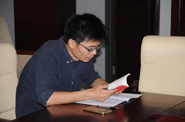 5月24日上午,马克思主义学院开展了学习《党章》的专题交流会。范宝舟书记带领学院党员硕士生、博士生重温《党章》。